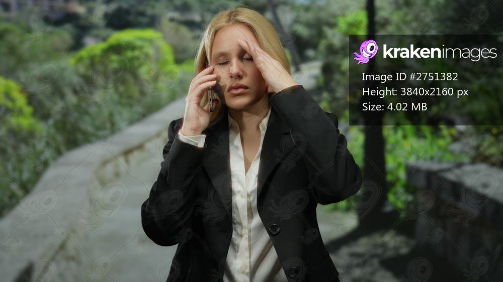 Woman talking on mobile in sunny park wearing suit surrounded by green trees showing focus and connection in business setting outdoors.