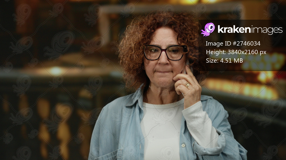 Woman talking on phone inside a dimly lit church setting, conveying a thoughtful expression, emphasizing a serene indoor environment with warm lighting and religious ambiance. - Kraken Images