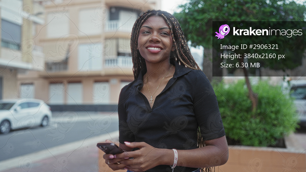 Woman texting on smartphone, hands visible holding device on urban street near parked car and apartment building; focused concentration.