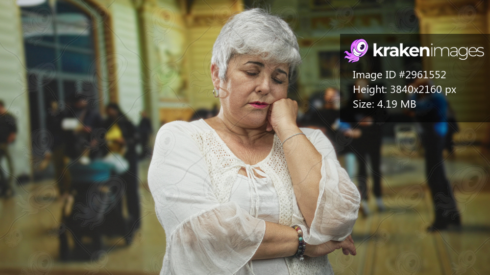 Woman touching cheek with hand and folded arm while waiting in airport terminal concourse; weary reflection.