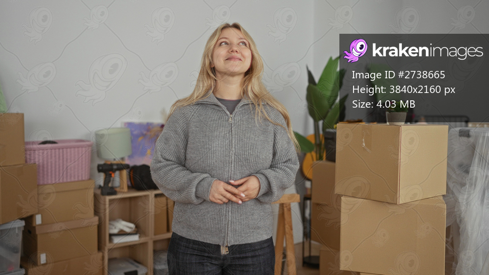 Woman unpacking in new home surrounded by cardboard boxes indicating moving into a modern apartment with organized interior design.