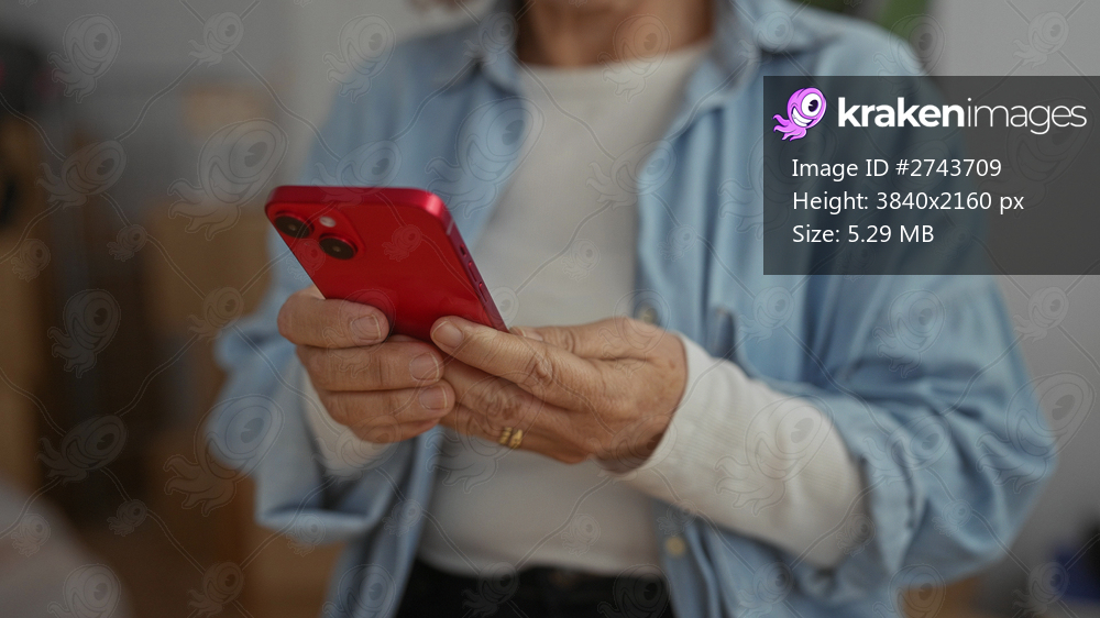 Woman using smartphone in living room, showcasing middle age lifestyle in new home setting, with focus on hands and modern technology.