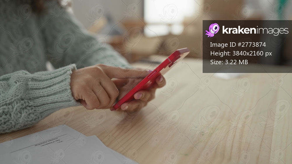Woman using smartphone in new apartment surrounded by unpacked boxes while checking documents on wooden table, creating cozy home environment.