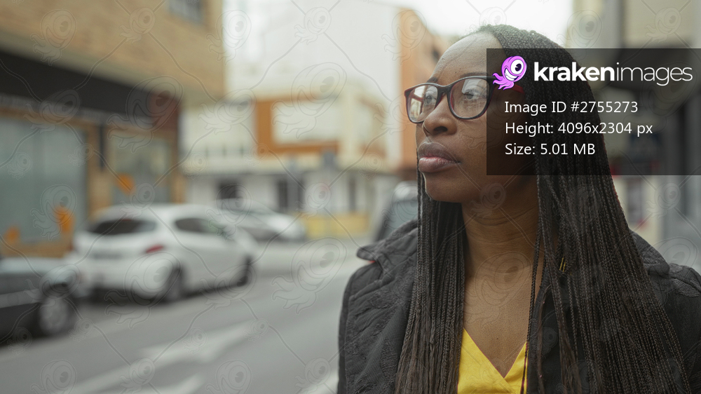 Woman walking in urban street wearing glasses with a focused expression surrounded by city life and traffic captured mid-morning showcasing youthful energy - Kraken Images