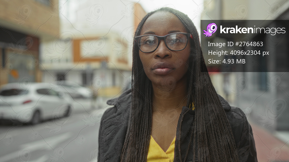 Woman walking in urban street wearing glasses with a focused expression surrounded by city life and traffic captured mid-morning showcasing youthful energy - Kraken Images
