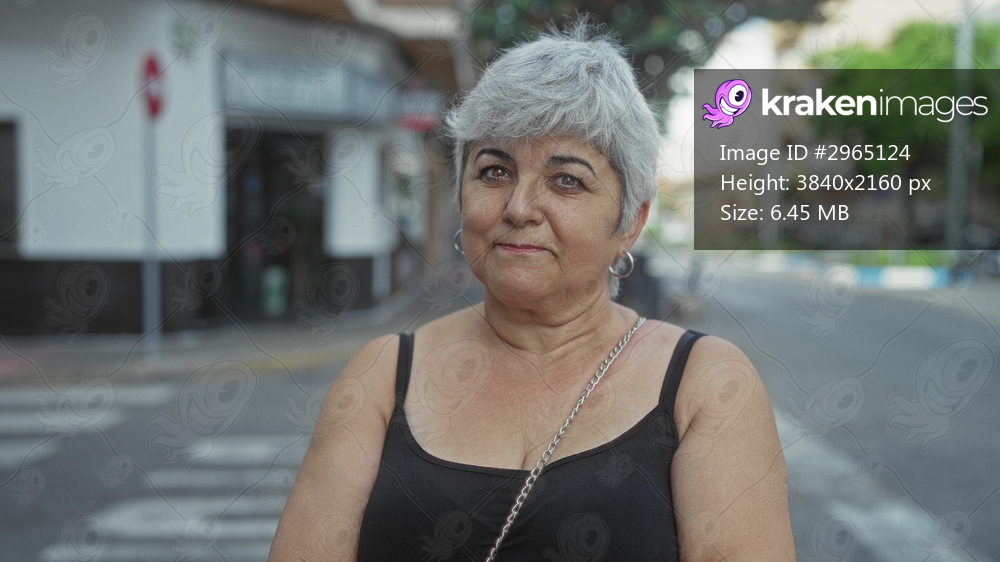 Woman wearing black tanktop with silver chain strap, looking sideways at a street crosswalk; calm contemplation.