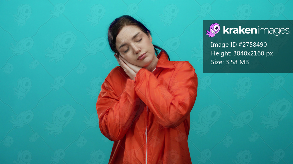 Woman wearing orange prison jumpsuit appearing sleepy in front of a bright blue background, illustrating fatigue and incarceration.