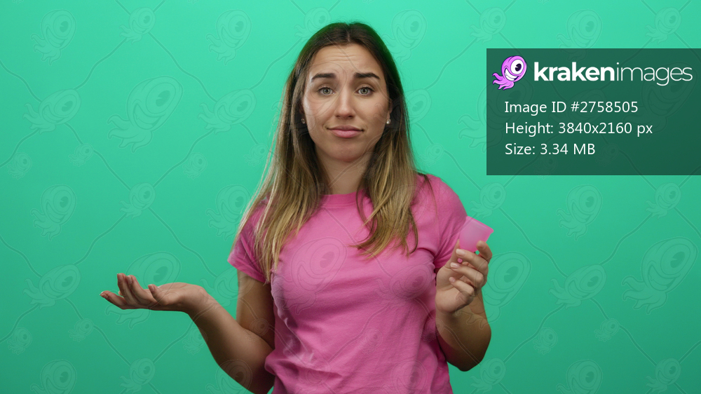 Woman wearing pink shirt holds menstrual cup looking uncertain against green wall background