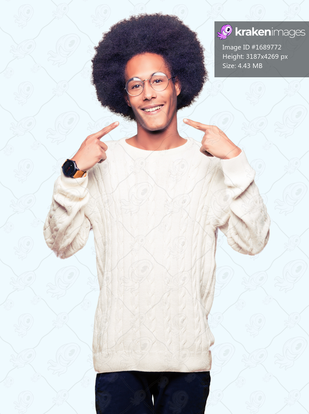 Young african american man with afro hair wearing glasses smiling confident showing and pointing with fingers teeth and mouth. Health concept.
