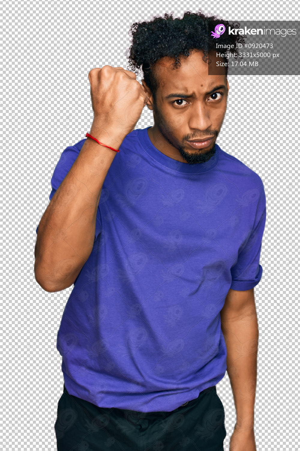 Young african american man with beard wearing casual purple t shirt angry and mad raising fist frustrated and furious while shouting with anger. rage and aggressive concept. - Kraken Images