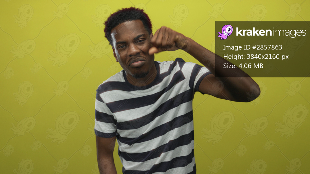 Young african american man making crying gesture wiping eye in studio with chartreuse background; sadness.