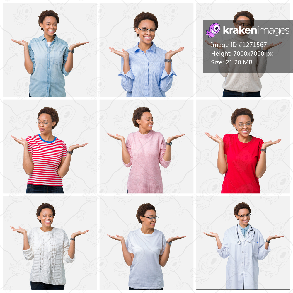Young african american woman with afro hair over isolated background Smiling showing both hands open palms, presenting and advertising comparison and balance - Kraken Images