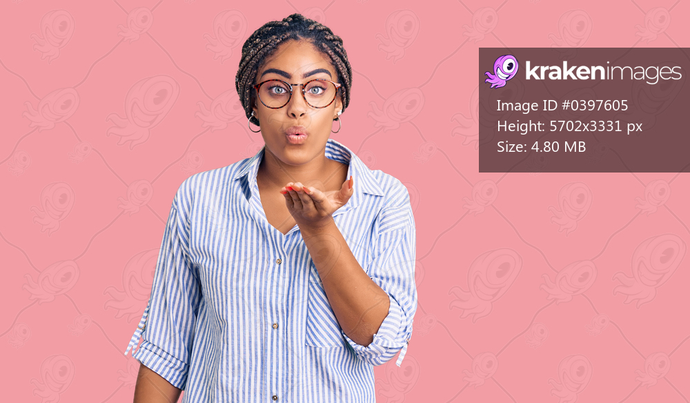 Young african american woman with braids wearing casual clothes and glasses looking at the camera blowing a kiss with hand on air being lovely and sexy. love expression. - Kraken Images