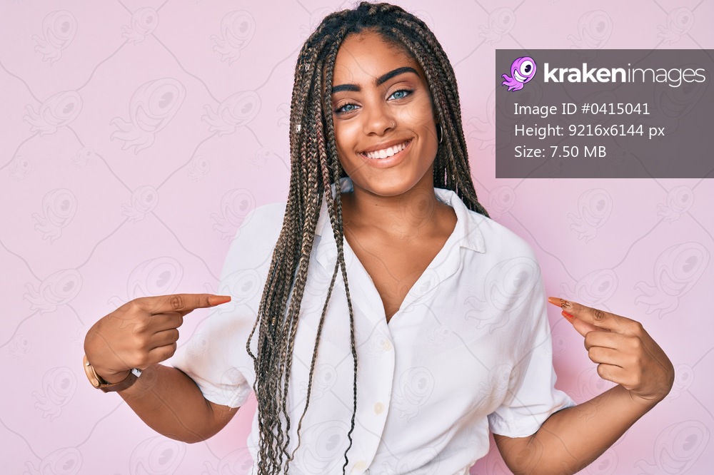 Young african american woman with braids wearing casual summer shirt looking confident with smile on face, pointing oneself with fingers proud and happy. - Kraken Images