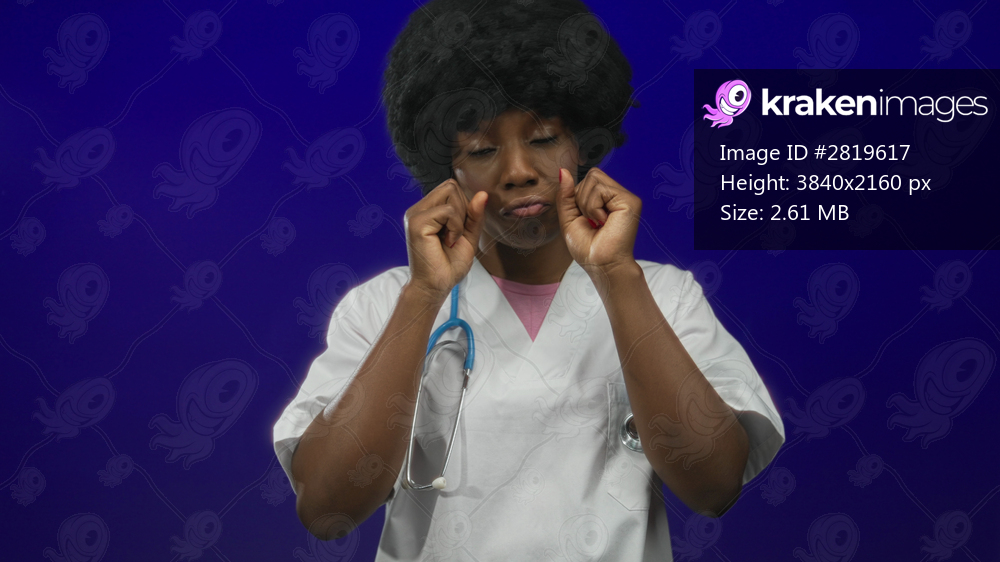 Young african american woman doctor wearing stethoscope rubbing eyes in blue studio; sadness fatigue.