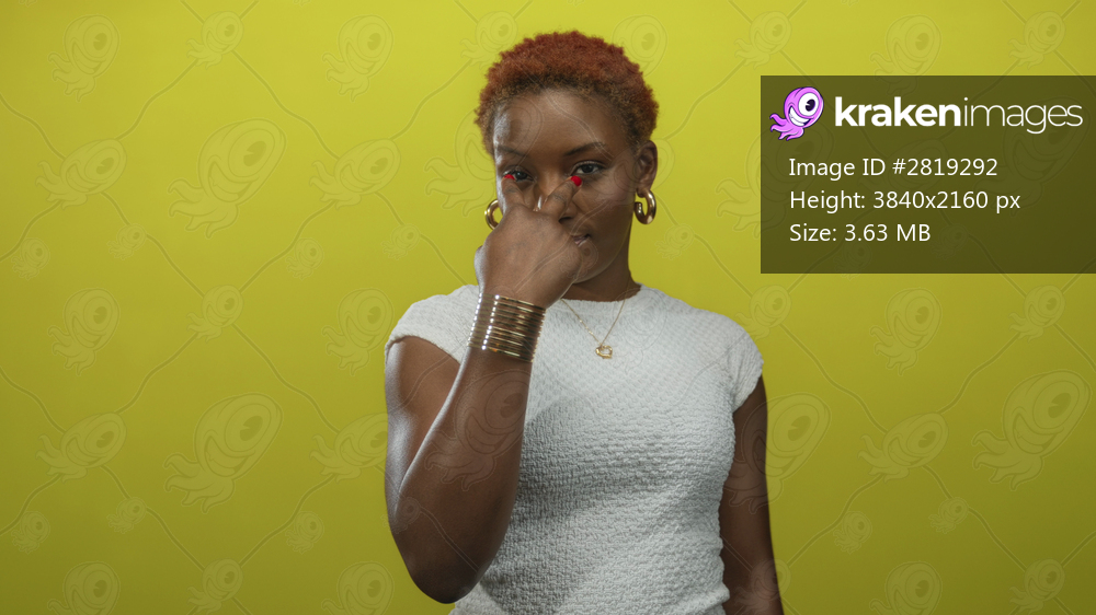 Young african american woman pointing finger toward camera against yellow studio backdrop; confidence.