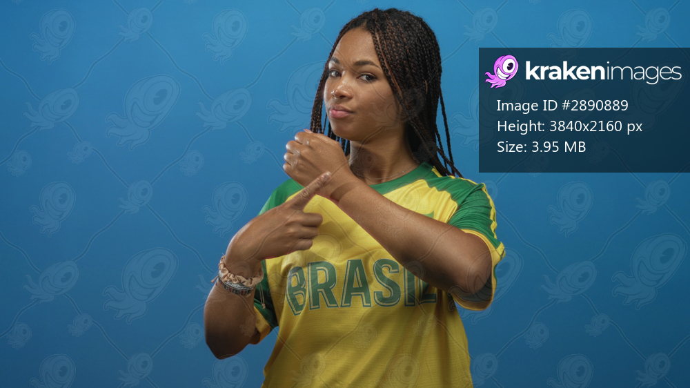 Young african american woman points finger to wrist in blue studio wearing yellow and green jersey; time awareness confident.