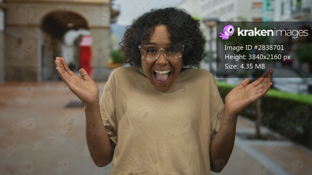 Young african american woman pressing hands to temples on a busy city street corner under sunlight; stress.