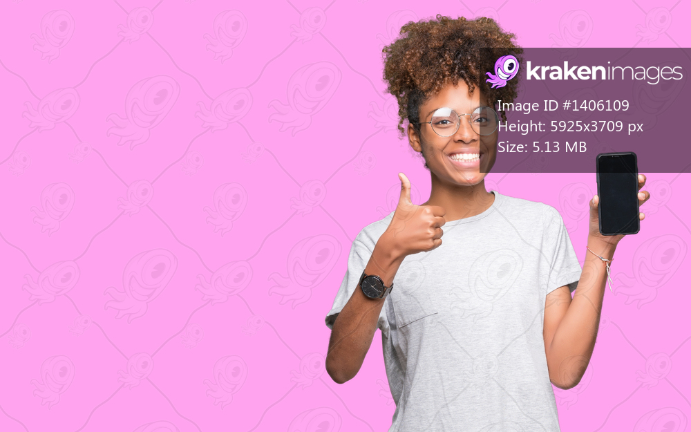 Young african american woman showing smartphone screen over isolated background happy with big smile doing ok sign, thumb up with fingers, excellent sign - Kraken Images