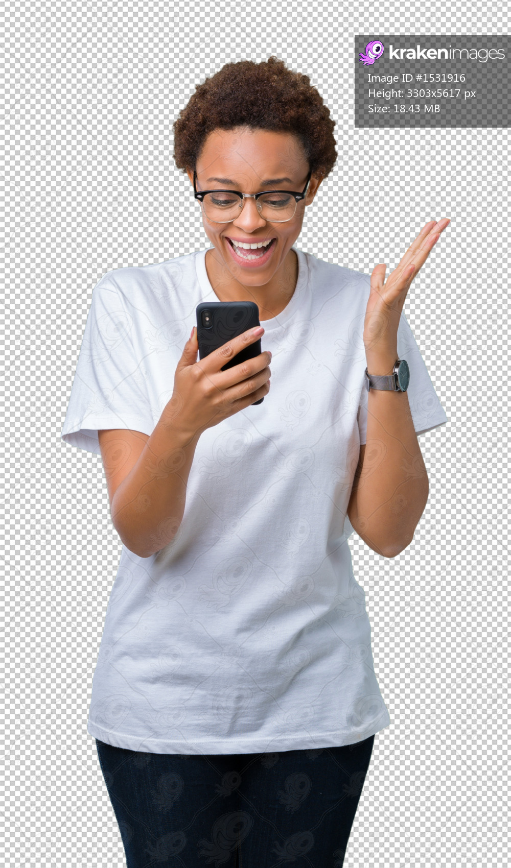 Young african american woman using smartphone over isolated background very happy and excited, winner expression celebrating victory screaming with big smile and raised hands - Kraken Images