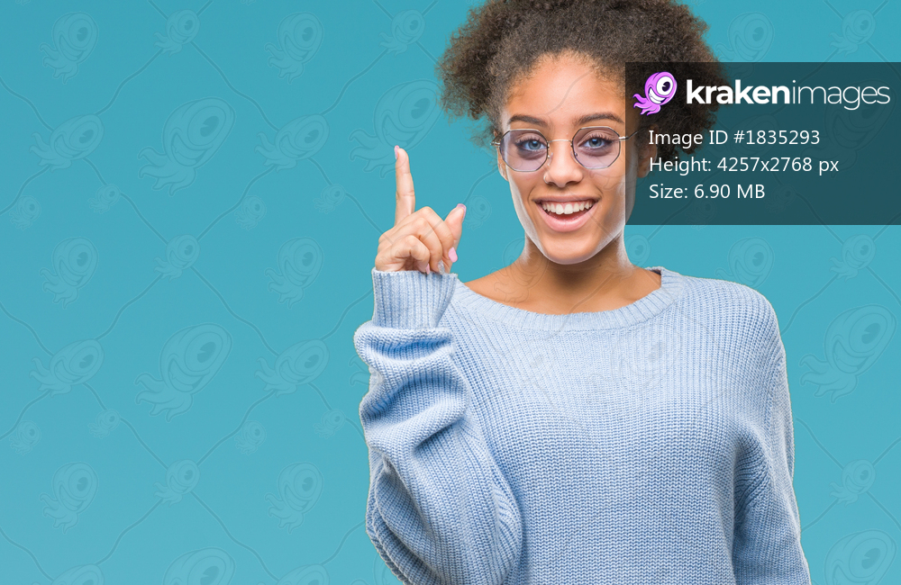 Young afro american woman wearing glasses over isolated background pointing finger up with successful idea. Exited and happy. Number one.