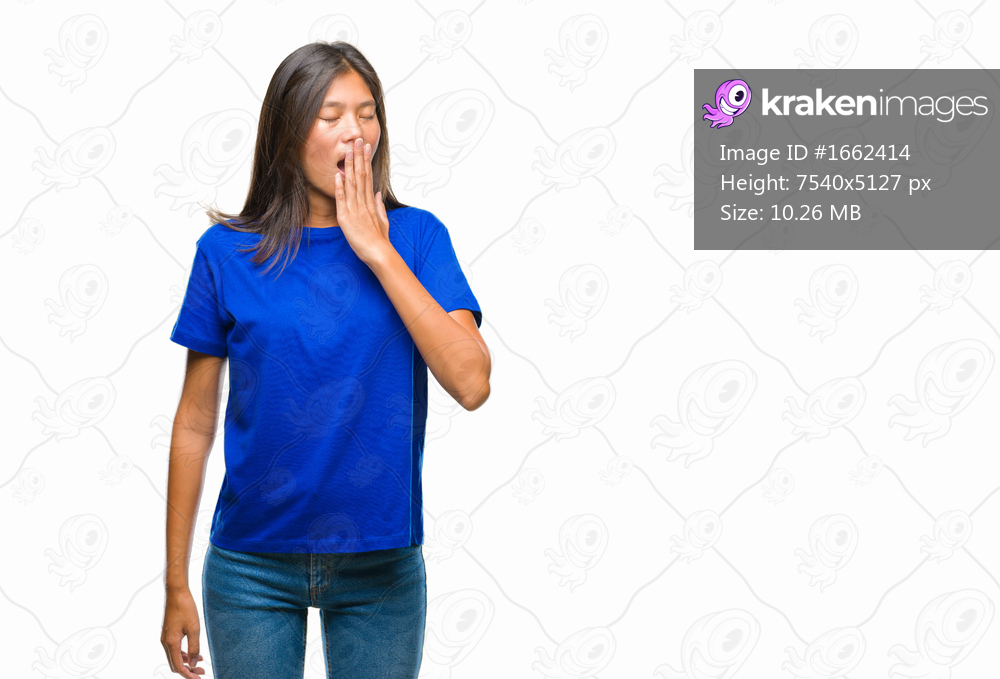 Young asian woman over isolated background bored yawning tired covering mouth with hand. Restless and sleepiness.