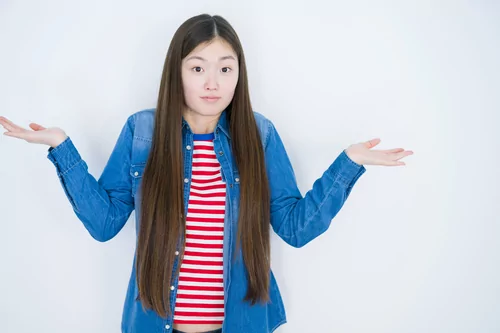 Young asian woman over isolated background clueless and confused expression with arms and hands raised. Doubt concept.