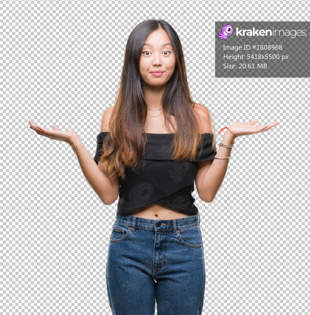 Young asian woman over isolated background clueless and confused expression with arms and hands raised. Doubt concept.