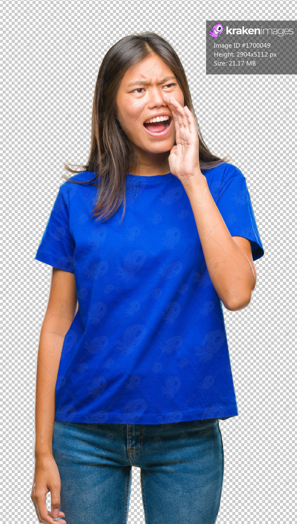 Young asian woman over isolated background shouting and screaming loud to side with hand on mouth. Communication concept.