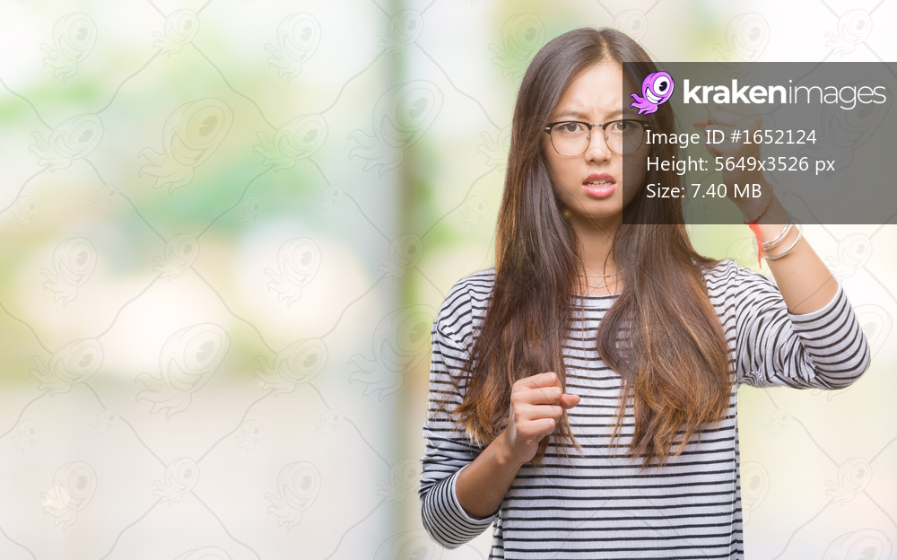 Young asian woman wearing glasses over isolated background angry and mad raising fist frustrated and furious while shouting with anger. Rage and aggressive concept. - Kraken Images