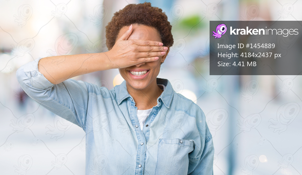 Young beautiful african american woman over isolated background smiling and laughing with hand on face covering eyes for surprise. Blind concept.