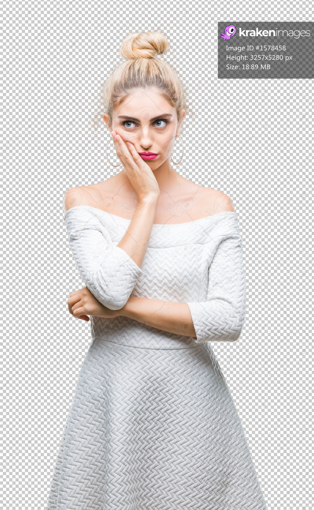 Young beautiful blonde and blue eyes woman over isolated background thinking looking tired and bored with depression problems with crossed arms.