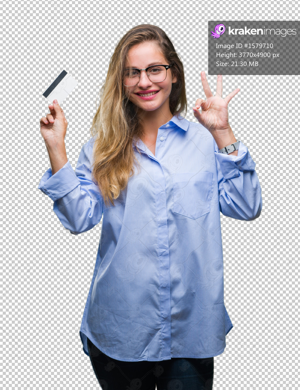 Young beautiful blonde woman holding credit card over isolated background doing ok sign with fingers, excellent symbol