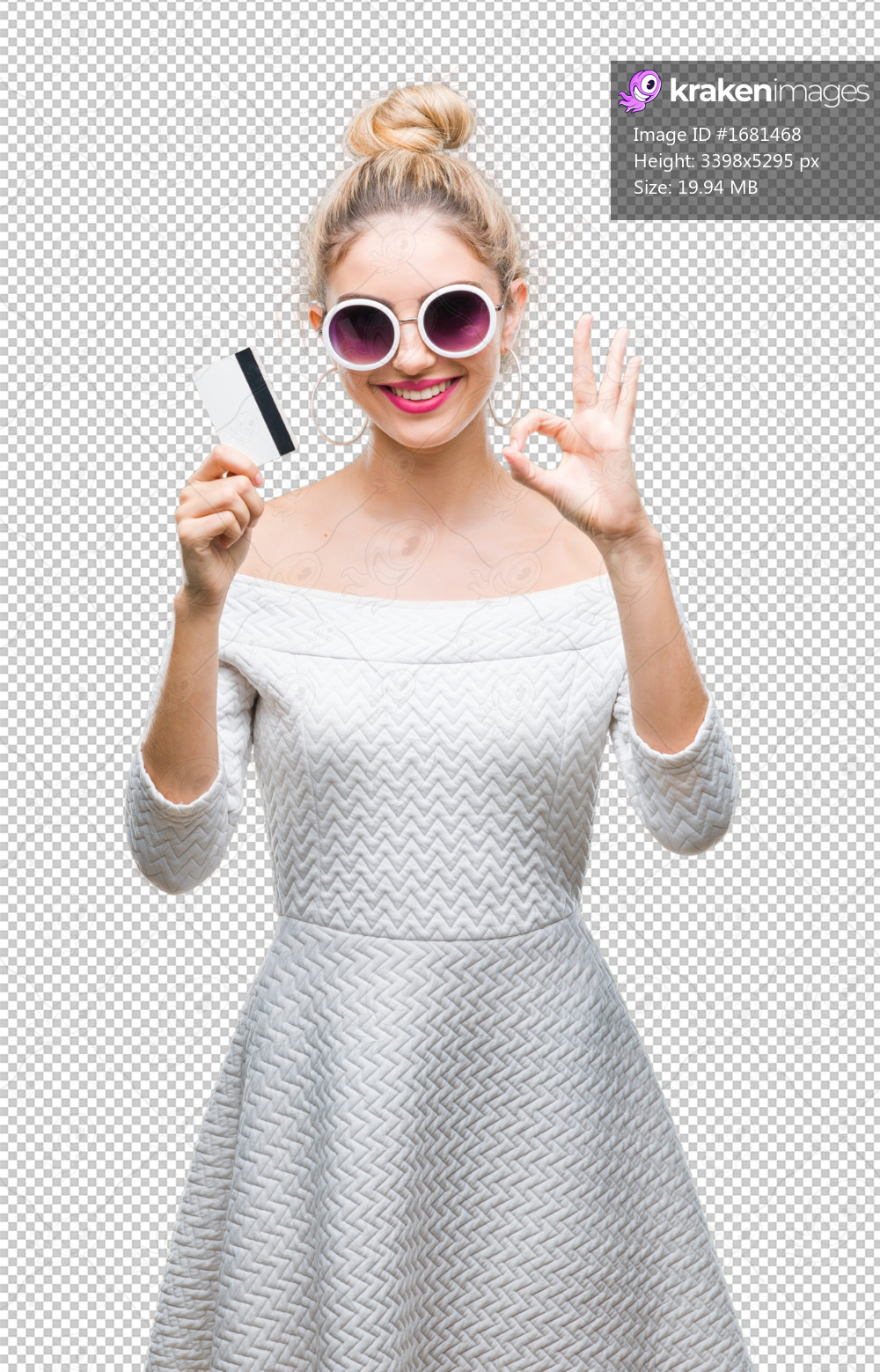 Young beautiful blonde woman holding credit card over isolated background doing ok sign with fingers, excellent symbol