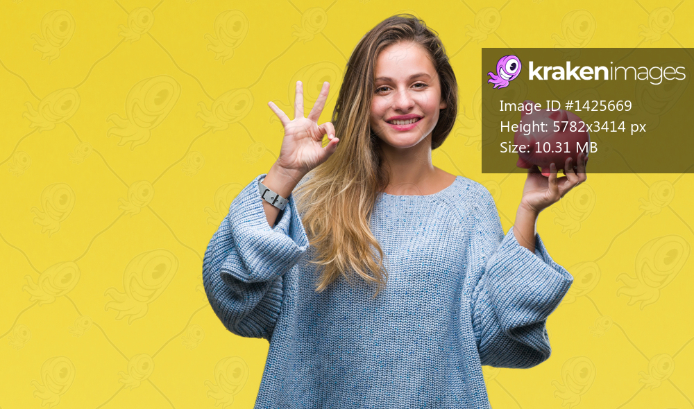 Young beautiful blonde woman holding piggy bank over isolated background doing ok sign with fingers, excellent symbol
