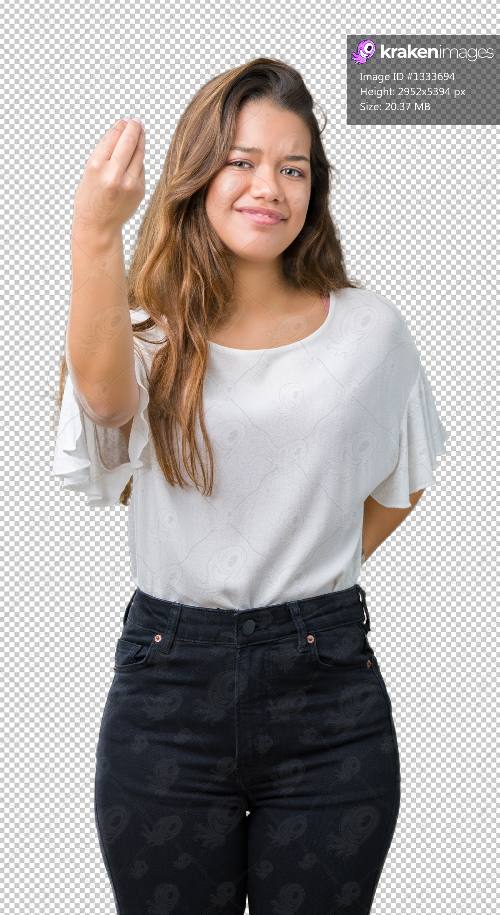 Young beautiful brunette business woman over isolated background Doing Italian gesture with hand and fingers confident expression