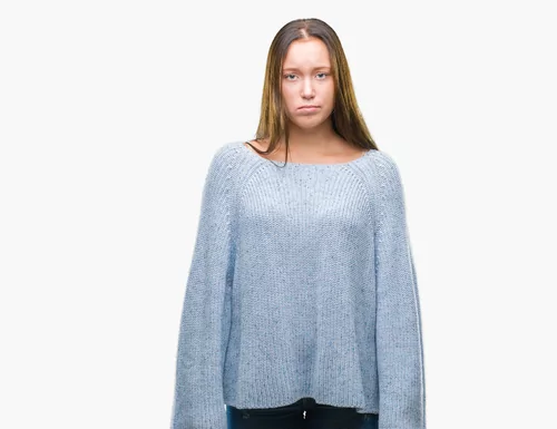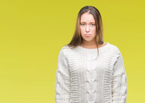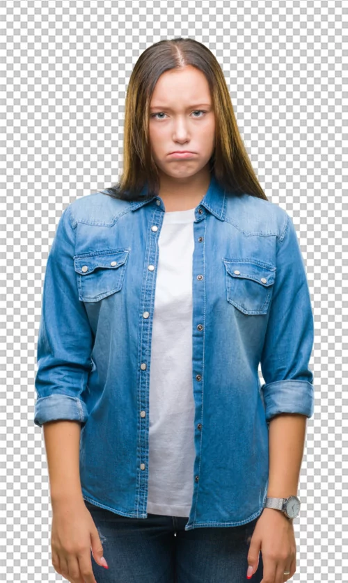 Young beautiful caucasian woman over isolated background depressed and worry for distress, crying angry and afraid. Sad expression.