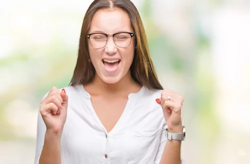 Young beautiful caucasian woman over isolated background excited for success with arms raised celebrating victory smiling. Winner concept.