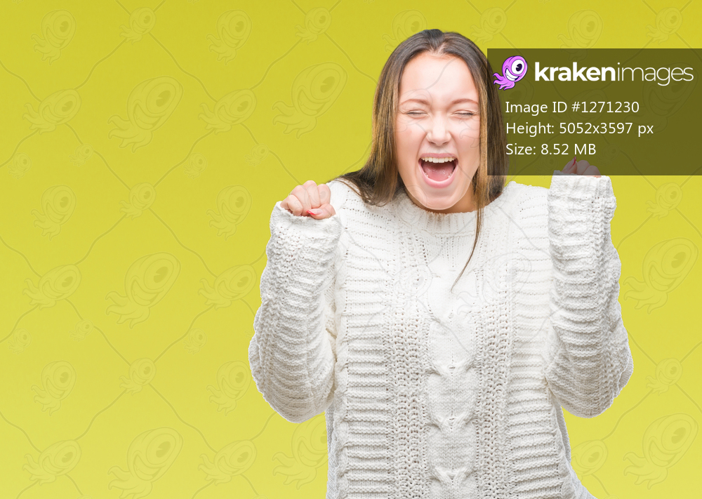 Young beautiful caucasian woman wearing winter sweater over isolated background excited for success with arms raised celebrating victory smiling. Winner concept.