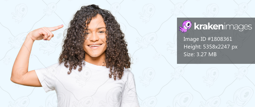Young beautiful woman with curly hair wearing white t-shirt Smiling pointing to head with one finger, great idea or thought, good memory