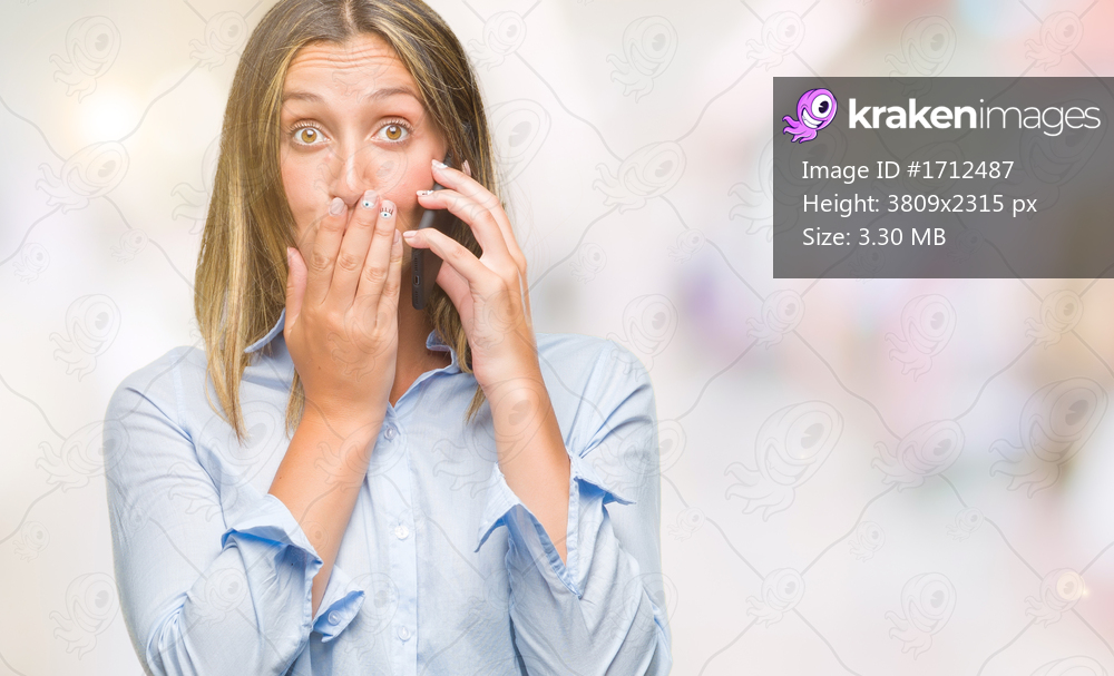 Young beautiful woman talking on smartphone over isolated background cover mouth with hand shocked with shame for mistake, expression of fear, scared in silence, secret concept - Kraken Images