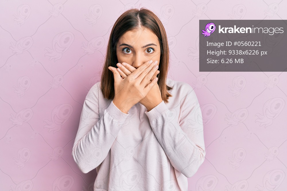 Young beautiful woman wearing casual clothes shocked covering mouth with hands for mistake. secret concept.