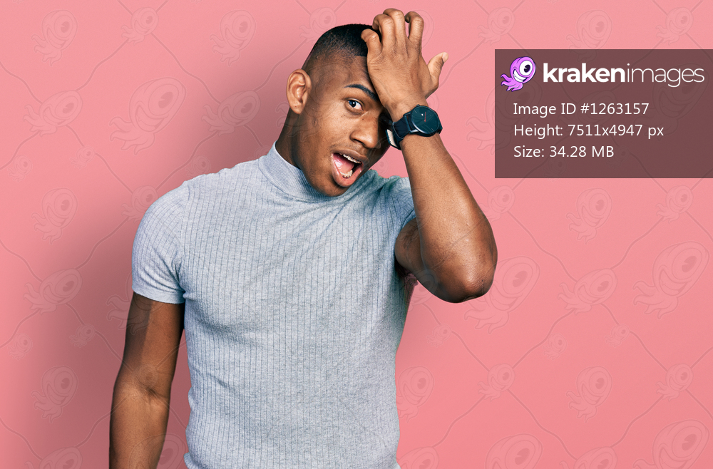 Young black man wearing casual t shirt surprised with hand on head for mistake, remember error. forgot, bad memory concept.