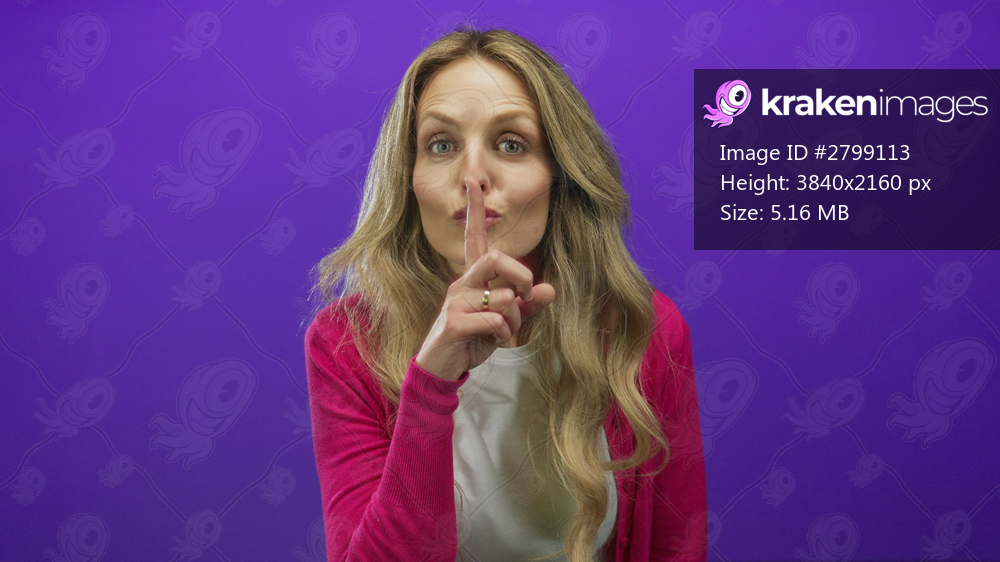 Young blonde woman gesturing silence with finger over lips against an isolated purple background wall wearing casual clothes.