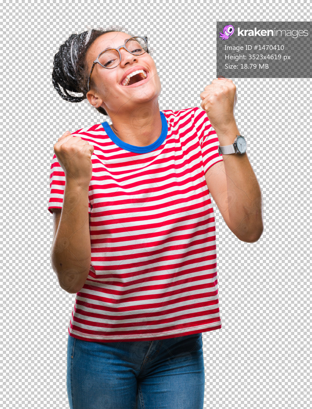 Young braided hair african american girl wearing glasses over isolated background celebrating surprised and amazed for success with arms raised and open eyes. Winner concept. - Kraken Images