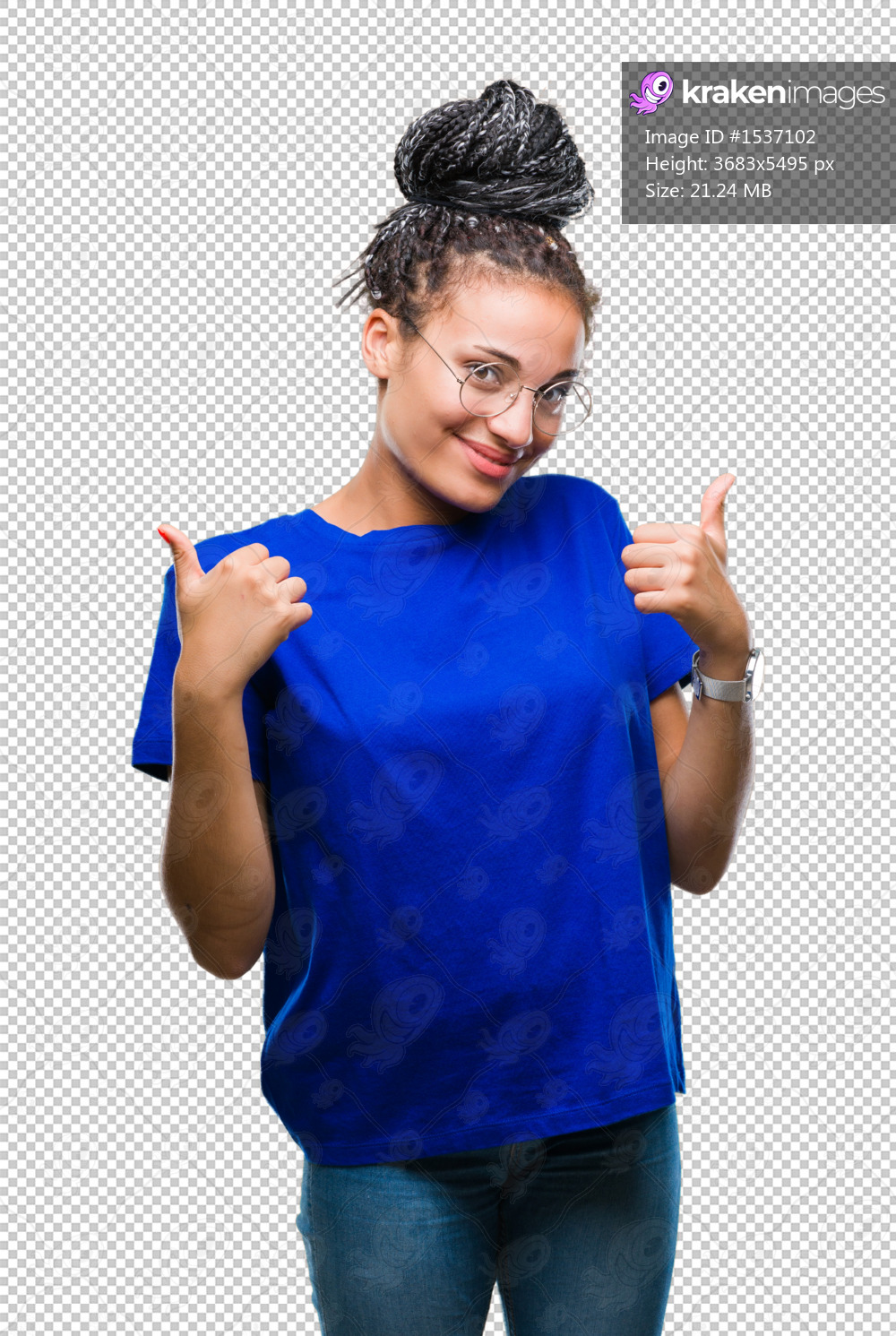 Young braided hair african american girl wearing glasses over isolated background success sign doing positive gesture with hand, thumbs up smiling and happy. Looking at the camera with cheerful expression, winner gesture. - Kraken Images