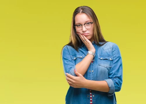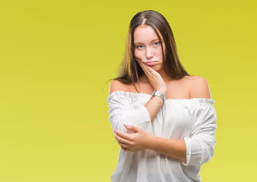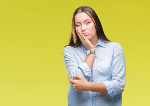 Young caucasian beautiful woman over isolated background bored yawning tired covering mouth with hand. Restless and sleepiness.
