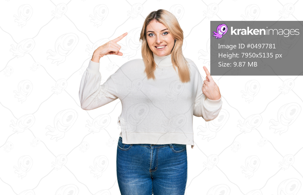 Young caucasian woman wearing casual winter sweater smiling pointing to head with both hands finger, great idea or thought, good memory