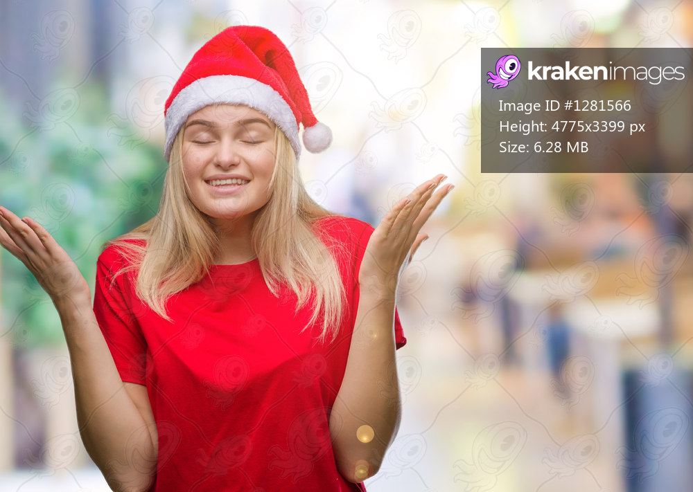 Young caucasian woman wearing christmas hat over isolated background celebrating mad and crazy for success with arms raised and closed eyes screaming excited. Winner concept - Kraken Images