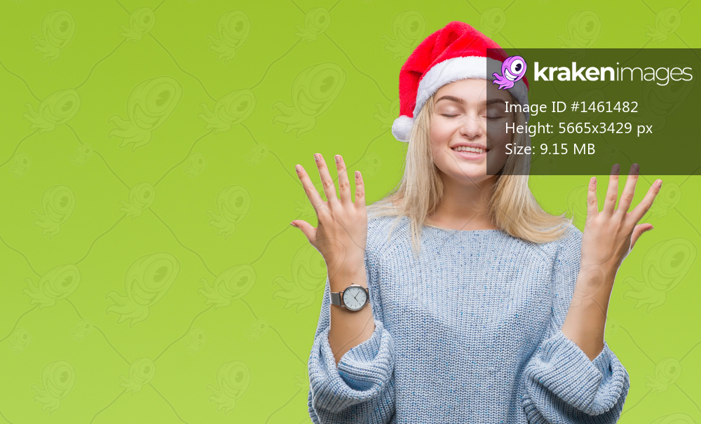 Young caucasian woman wearing christmas hat over isolated background celebrating mad and crazy for success with arms raised and closed eyes screaming excited. Winner concept - Kraken Images
